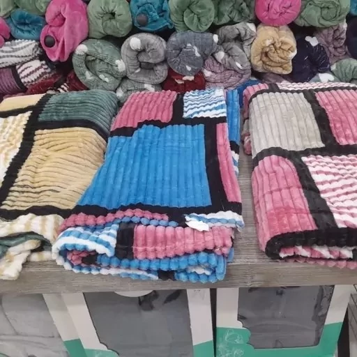 پتو مسافرتی پلیسه دونفره تک رنگ و چهار خونه