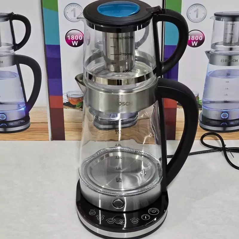 چای ساز روهمی بوش 👈 مدل WB-129TS تمام لمسی👉 کنترل پنل دیجیتالی دارای المنت استیل از نوع ضد زنگ سیستم گرم نگهدار هوشمند شیشە مقاوم در برابر حرارت امکانات :چرخش 360 درجه امکانات ظاهری:پنل لمسی امکانات نگهداری نوشیدنی:صفحه گرم نگه دارنده تعداد تنظیمات دما:5 تعداد دمای قابل تنظیم:5 محل قرارگیری قوری:روی هم ویژگیهای نظافتی:فیلتر تفاله گیر چای 💢چای ساز و قهوه ساز 💢توان 1800 وات 💢ظرفیت کتری 2.5 لیتری 💢ظرفیت قوری 1 لیتری 💢مجهز به فیلتر تمام استیل در داخل قوری 💢مجهز به سیستم خاموش شدن اتوماتیک 💢دارای المنت های حرارتی پنهان 💢دارای سر اضافی برای کتری 💢نگه داشتن درجه حرارت جوش با صرف انرژی کم چای ساز بوش مدل WB-129TS چای ساز بوش مدل WB-129TS با دستگیره های عایق حرارت و بدنه مقاوم در برابر حرارت بالا تونسته محبوبیت بالایی درمصرف کننده ها بدست بیاورد. این چایساز دارای توان مصرفی 1800وات وظرفیت قوری 1لیتر وظرفیت کتری2.5 لیتر است. جنس بدنه کتری بوش WB-129TS شیشه مقاوم وجنس قوری آن از پیرکس می باشد. چای ساز روهمی بوش مدل WB-129TS تمام لمسی چای ساز و قهوه ساز توان 1800 وات واقعی ظرفیت کتری 2.5 لیتری ظرفیت قوری یک لیتری مجهز به فیلتر تمام استیل در داخل قوری مجهز به سیستم خاموش شدن اتوماتیک دارای المنت های حرارتی پنهان دارای سر اضافی برای کتری نگه داشتن درجه حرارت جوش با صرف انرژی کم نگهداشتن آب داغ و جوش بین 65 تا 100 درجه سانتیگراد طبق سلیقه شما ست قوری شیشه ای مدل WB-129TS پانل کنترل لمسی با دکمه روشن/خاموش و 3 دکمه کنترل دما، برای انتخاب آزادانه بین 65 درجه سانتیگراد تا 100 درجه سانتیگراد بنا به درخواست شما. مجهز به حلقه نوری ال ای دی برای روشن شدن تمام بدنه شیشه ای در هنگام جوشیدن. دارای نمایشگر LCD که دمای لحظه ای آب را نشان می دهد. دارای کنترل محافظ گرمایش بیش از حد می باشد. ### چای ساز لمسی بوش مدل WB-129TS : تجربهای بینظیر از نوشیدنیهای داغ ☕✨ اگر شما هم از دوستداران چای و قهوه هستید و به دنبال دستگاهی با کیفیت و کارآمد برای تهیه نوشیدنیهای گرم میگردید، چای ساز لمسی بوش مدل WB-129TS گزینهای عالی برای شماست. این چای ساز با طراحی شیک و مدرن خود، به راحتی میتواند به دکور آشپزخانه شما زیبایی بخشد و تجربهای منحصر به فرد از نوشیدنیهای داغ را برایتان رقم بزند. #### ویژگیهای برجسته چای ساز بوش با قدرت 1800 وات و ظرفیت 2.5 لیتری کتری و 1 لیتری قوری، به شما این امکان را میدهد که به آسانی برای خانواده یا مهمانان خود نوشیدنی تهیه کنید. بدنه شیشهای مقاوم در برابر حرارت و قوری از جنس پیرکس، به شما اطمینان میدهد که کیفیت و ایمنی دستگاه در بالاترین سطح قرار دارد. علاوه بر این، طراحی پنل لمسی دیجیتال و صفحه نمایش LCD، استفاده از دستگاه را بسیار آسان و لذتبخش کرده است. 🌟 #### سیستم گرم نگهدار هوشمند یکی از ویژگیهای منحصر به فرد این چای ساز، سیستم گرم نگهدار هوشمند آن است که به شما این امکان را میدهد تا دمای آب را بین 65 تا 100 درجه سانتیگراد به دلخواه تنظیم کنید. این ویژگی به شما کمک میکند تا همیشه چای یا قهوهای با دمای مورد علاقهتان نوش جان کنید. #### امکانات کاربردی چای ساز بوش WB-129TS همچنین مجهز به المنتهای حرارتی پنهان و فیلتر تمام استیل است که به شما این اطمینان را میدهد که نوشیدنیهای شما همیشه تازه و خوشطعم خواهند بود. به علاوه، سیستم خاموش شدن اتوماتیک و محافظ گرمای بیش از حد، ایمنی دستگاه را افزایش میدهند و خیال شما را از بابت استفاده آسان و بیخطر راحت میکنند. #### طراحی زیبا و کاربرپسند چای ساز بوش با چرخش 360 درجه، به شما این امکان را میدهد تا به راحتی قوری را بر روی کتری قرار دهید. این ویژگی نه تنها استفاده از دستگاه را آسانتر میکند، بلکه به زیبایی دکور آشپزخانه شما نیز میافزاید. 💖 با چای ساز لمسی بوش مدل WB-129TS ، لحظاتی دلنشین و گرم را در کنار خانواده و دوستانتان تجربه کنید. صرفهجویی در انرژی و راحتی در استفاده، این چای ساز را به یکی از بهترین انتخابها برای هر خانها