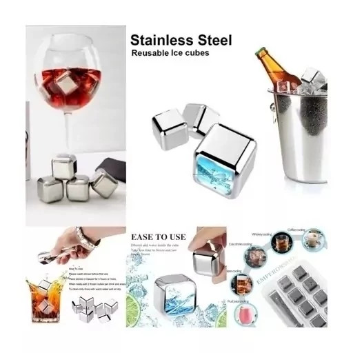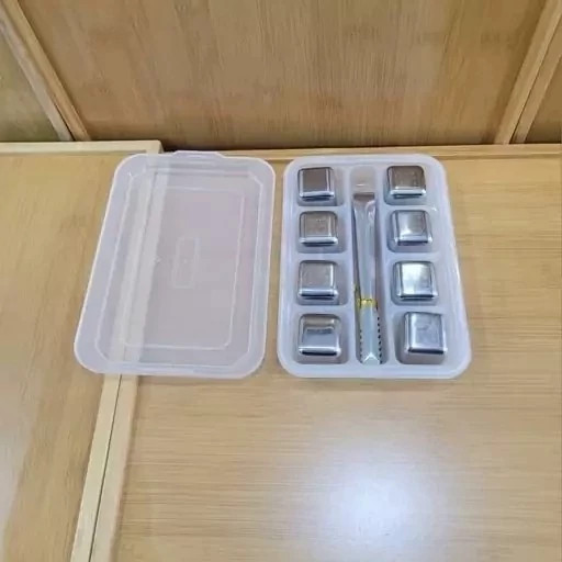 قالب یخ مکعبی استیل 8 عددی وسیله ای کاربردی و جدید برای خنک کردن انواع نوشیدنی هاست. یخ های مکعبی از جنس استیل ضد زنگ هستند که داخل آن از آب و مایع خنک کننده پر شده است. کافیست حبه یخ های استیل را به مدت 2 ساعت درون فریزر قرار دهید تا مایع درون آن یخ زده و بعد داخل لیوان نوشیدنی خود بیاندازید. ویژگی اصلی این مکعب های استیل حفظ کردن طعم مایعات است که بدون تغییر در طعم و رنگ