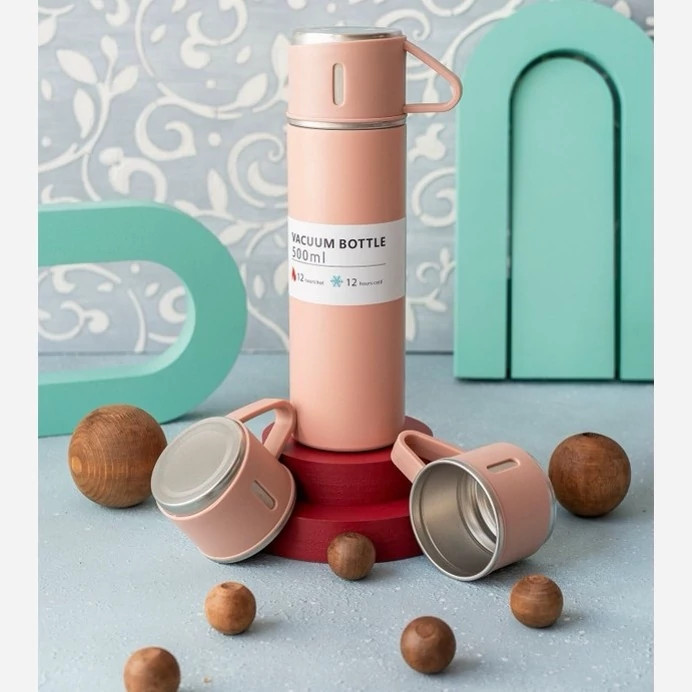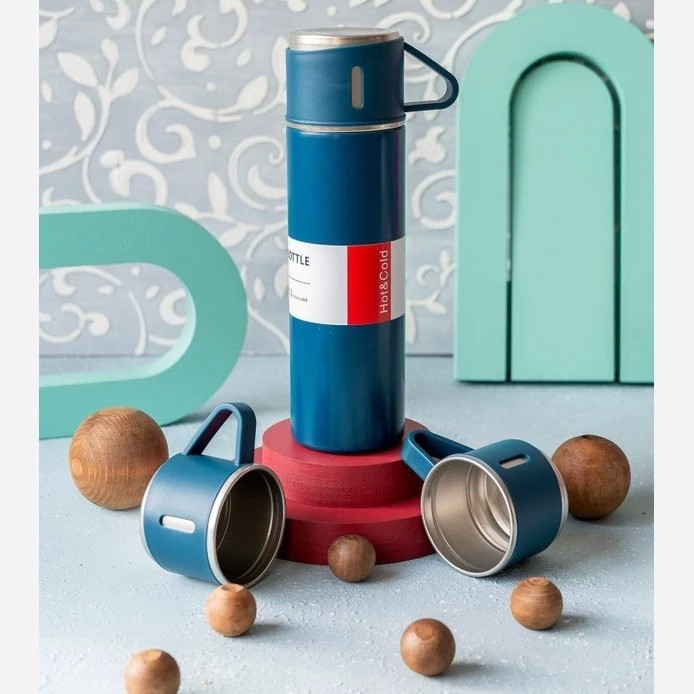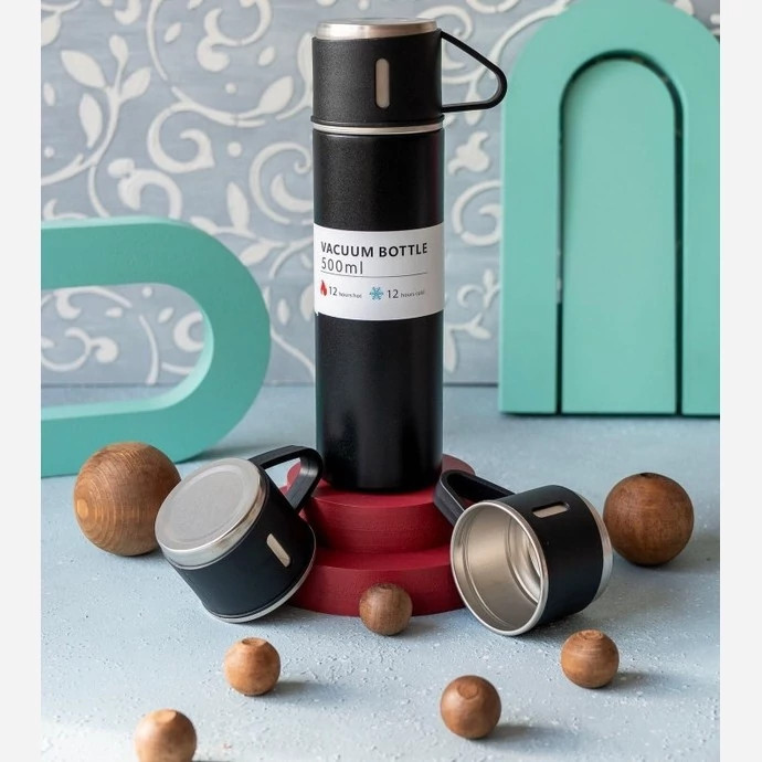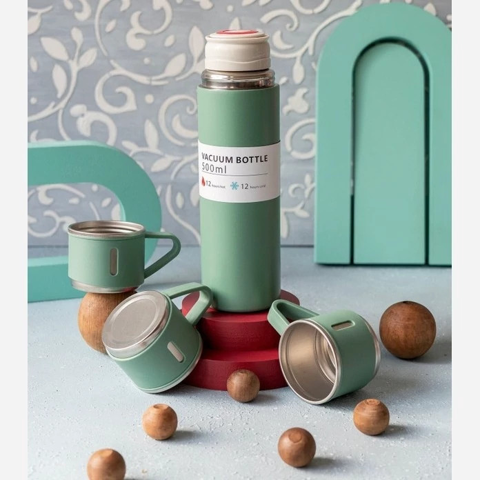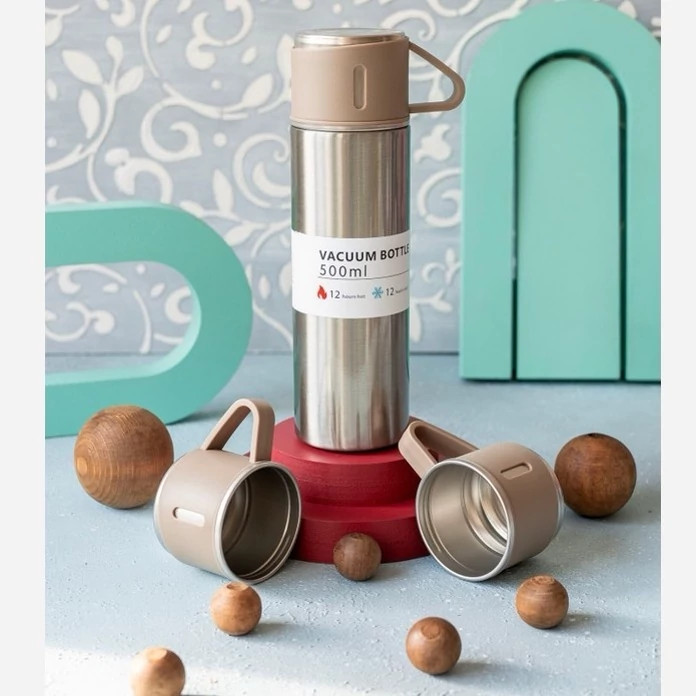 فلاسک مدل کادویی VACUUM FLASK SET گنجایش 0.5 لیتر به همراه لیوان مجموعه 3