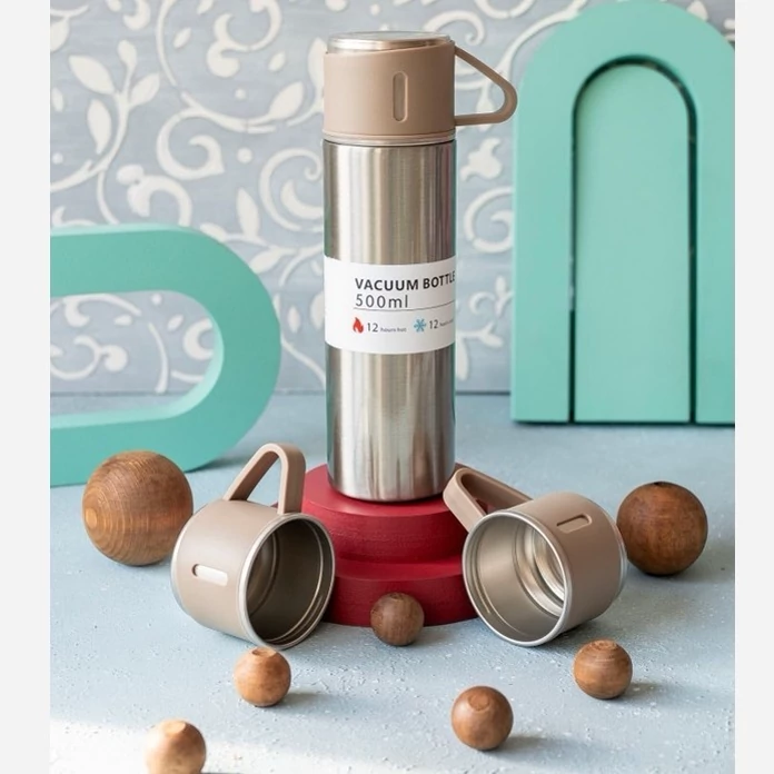 فلاسک مدل کادویی VACUUM FLASK SET گنجایش 0.5 لیتر به همراه لیوان مجموعه 3