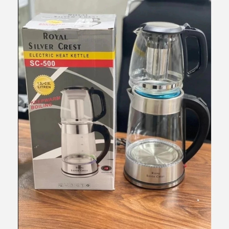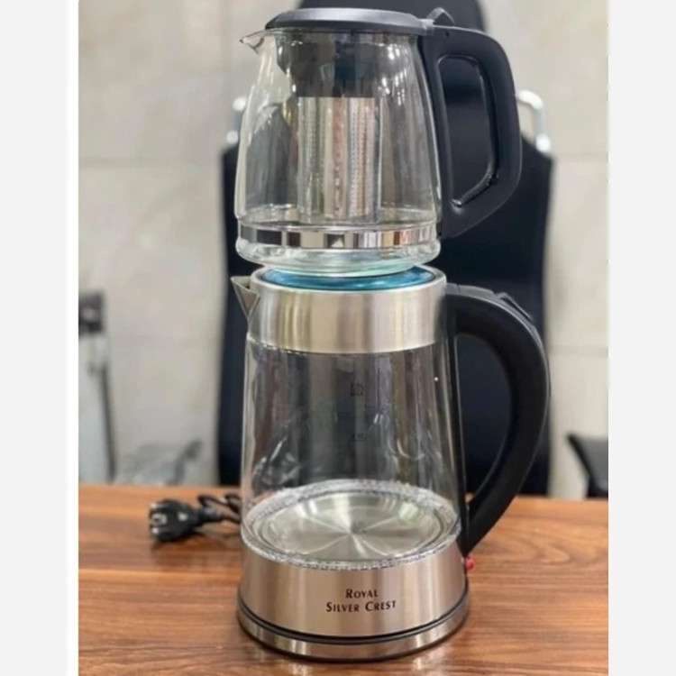 اصالت کالا اصل توان 1800 وات ظرفیت قوری 1.5 لیتر ظرفیت کتری 2.8 لیتر جنس بدنه شیشه پیرکس