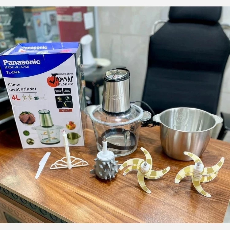 خردکن دوکاسه پاناسونیک ژاپن 4لیتر 6+6 تیغه تیتانیوم طلایی سیرپوست کن و همزن -3 کاره- 3000W وات مدلSL-2024