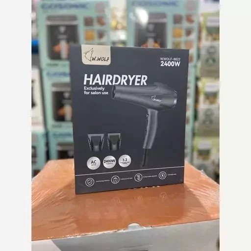 سشوار ولف w.wolf نیمه حرفه ای پرقدرت 2400 وات موتور AC دارای سری متمرکزکننده کیفیت عالی