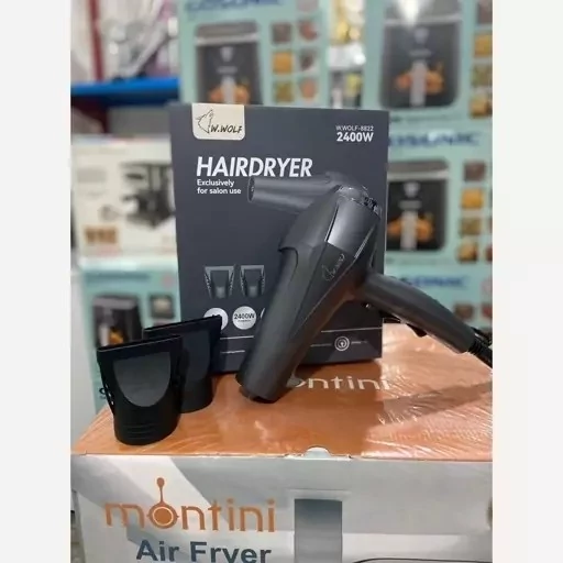 سشوار ولف w.wolf نیمه حرفه ای پرقدرت 2400 وات موتور AC دارای سری متمرکزکننده کیفیت عالی