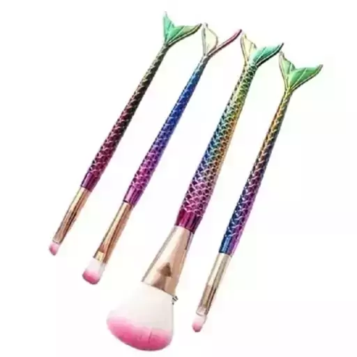 ست براش آرایشی پری دریایی 4 عددی برای سایه چشم، فونداسیون،کرم پودر، رژگونه، هایلایت، ابرو، لکه های سایه چشم و آرایش روزانه مناسب هستند. از 4 برس حرفه ای و با کیفیت تشکیل شده است. این محصول با الیاف فوق العاده نرم و متراکم ساخته شده است که به پوست شما نفوذ نمی کند و آن را تحریک نمی کند.دسته های این ست براش آرایشی پری دریایی 4 عددی از مواد اولیه استاندارد ساخته شده اند و این باعث می شود دستگیره در برابر خراش مقاوم باشد و ماندگاری بالایی داشته باشد. این محصول منحصر به فرد برای خانم های فعال که می خواهند وسایل ضروری خود را در سفر داشته باشند تا بتوانند همیشه بهترین ظاهر را داشته باشند یا استفاده در طول روز، به راحتی درون کیف دستی قرار می گیرد. این براش آرایشی خیلی با کیفیت و قیمت مناسب می باشد.
