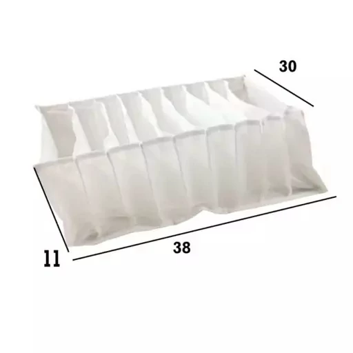 نظم دهنده کشو بسیار جادار و زیبا است و برای منظم کردن کشو و کمد به کار می رود .نشم دهنده در اندازهای مختلف وجود دارد این نظم دهنده به سایز لارج معروف است و در 9 قسمت می باشد و اندازهای روی بسته آن قید شده است به این ترتیب می باشد 38x30x11 cm
