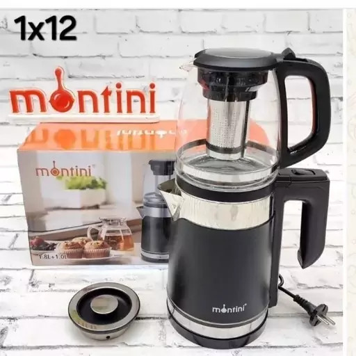 چایساز رو همی مارک مونتینی کیفیت بی نظیر و زیبا با یک کتری دو لیتری بدنه لاکی و داخل استیل و یک قوری یک لیتری پیرکس ، ارسال رایگان