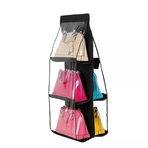 نگهداری از این کیف های دستی کار بسیار دشواری است ، چراکه در ساده ترین حالت به راحتی در زیر دیگر وسایل له می شوند و یا فرم اولیه خود را از دست می دهند . برای جلوگیری از این موضوع اغلب کیف را داخل پوششی و جدا از دیگر وسایل نگهداری می کنند ، عملی که اگرچه کاربردی است ، اما باعث اشغال فضای زیادی خواهد شد. ایده ها و وسایل مختلفی ارائه شد تا بتواند این مشکل را برطرف کند ،ما این بار شما را با یکی از این محصولات با نام آویز کیف 6 خانه آشنا خواهیم کرد . محصولی با طراحی جدید ، ساده و در عین حال بسیار کاربردی که می تواند مشکل شما در نگهداری از کیف های دستی را برطرف کند . آویز کیف 6 خانه ، به صورت دوطرفه طراحی شده و ظرفیت آن 6 کیف می باشد.در قسمت بالایی نگهدارنده ، یک قلاب فلزی جهت آویزان کردن داخل کمد ، چوب لباسی و حتی پشت درب قرار داده شده تا بتوانید در هر جایی که می خواهید نگهدارنده را آویزان کنید