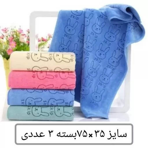 حوله دستی مدل خرگوش 3 عدد سایز 35در75 حوله مسافرتی ورزشی نانو خرگوشی حوله میکرو فایبر 35 در 75 حوله دست صورت