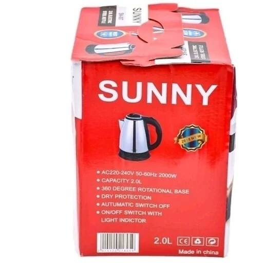 کتری برقی سانی مدل SN-007 دارای ظرفیت 2 لیتر است که توان آن 2000 وات می باشد. برند sunny یکی از برندهای محبوب سازنده تجهیزات برقی آشپزخانه است که با کیفیت بالا و قیمت مناسب توانسته رضایت مشتریان را جلب نماید. این کتری به راحتی بر روی پایه می چرخد و چراغ اندیکاتور بر روی پایه وجود دارد که روشن بودن کتری برقی را نمایش می دهد.