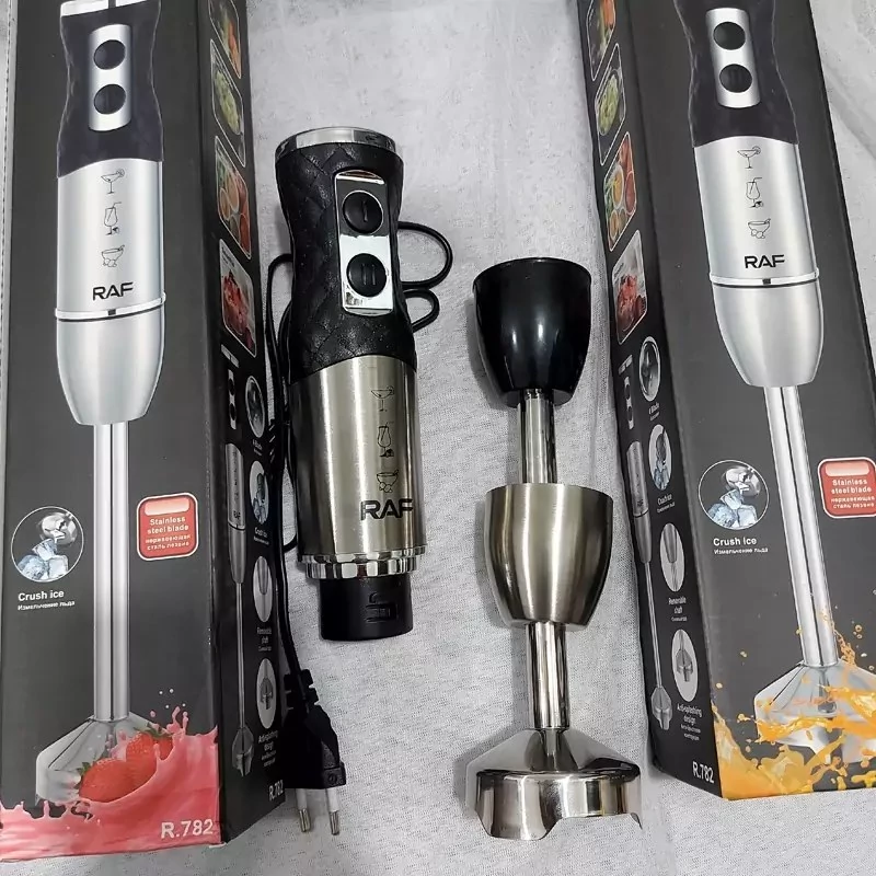 گوشت کوب راف مدل R.782 گوشت کوب چهار تیغه راف بدنه استیل 1600 وات واقعی یخ شکن دار دو دور موتور دارای درجه کم زیاد موتور به اندازه دلخواه موتور سنگین کیفیت عالی زیر قیمت بازار رسید گوشت کوب برقی راف تک کاره 1600 وات مدل R.782 از یک موتور گیربکسی دو سرعته با قدرت 1600 وات بهره میبرد که همین امر موجب می شود به راحتی انواع گوشت را با تیغه های استیل و قدرتمند کوبیده و له کند. همچنین علاوه بر له کردن، آسیاب و مخلوط کردن مواد غذایی را نیز انجام می دهد که می توان از این قابلیت برای تهیه اسموتی ها، تهیه سس و یا پوره کردن سیب زمینی استفاده کرد. کار با این دستگاه ساده بوده و می توان با استفاده از دکمه های تعبیه شده روی بدنه، سرعت آن را کنترل کرد. همچنین سری گوشت کوب برقی راف مدل R.782 به گونه ای طراحی شده است که باعث میشود مواد غذایی شما در هنگام مخلوط کردن به اطراف ظرف ریخته نشود. و در آخر تیغه گوشت کوب برقی راف تک کاره 1600 وات مدل R.782 را جدا کنید و به راحتی بشویید. ### گوشت کوب برقی راف مدل R.782: دوست همیشگی آشپزخانه شما! 🍽️✨ آیا به دنبال وسیلهای هستید که آشپزی را برای شما آسانتر و لذتبخشتر کند؟ گوشت کوب برقی راف مدل R.782 با طراحی مدرن و ویژگیهای فوقالعادهاش، به یکی از ضروریترین لوازم خانگی شما تبدیل خواهد شد! با قدرت 1600 وات، این گوشت کوب برقی میتواند به راحتی انواع گوشت را خرد و له کند و به شما امکان میدهد تا در مدت زمان کوتاهی، غذاهای خوشمزه و متنوعی تهیه کنید. 🔪💪 این محصول با چهار تیغه استیل ضد زنگ، که به راحتی و با دقت به کار میافتد، میتواند به شما در تهیه اسموتیهای خوشمزه، سسهای متنوع و حتی پوره کردن سیب زمینی کمک کند. با دو سرعت متفاوت، میتوانید به راحتی تنظیمات را تغییر دهید و با توجه به نیاز خود، از حالت ضربهای و قابلیت یخ شکن آن بهرهبرداری کنید. به این ترتیب، هیچ محدودیتی برای خلاقیت شما در آشپزی وجود ندارد! 🥤❄️ بدنه استیل مشکی این دستگاه علاوه بر زیبایی، دوام و استحکام بالایی را به همراه دارد. کابل یک متری آن نیز به شما این امکان را میدهد تا بدون نگرانی از فاصله پریز، به راحتی از دستگاه استفاده کنید. و مهمتر از همه، تمیز کردن این دستگاه بسیار آسان است؛ فقط کافیست تیغه را جدا کنید و آن را بشویید. 🧼✨ با خرید گوشت کوب برقی راف مدل R.782، شما دیگر نیازی به ابزارهای متعدد برای انجام کارهای مختلف نخواهید داشت. این دستگاه چند کاره میتواند به عنوان همزن، خردکن و حتی برای تهیه اسموتیهای خوشمزه مورد استفاده قرار گیرد. بنابراین، با یک خرید، چندین ابزار در آشپزخانه خود خواهید داشت. به جمع هواداران گوشت کوب برقی راف بپیوندید و تجربهای جدید و هیجانانگیز از آشپزی را به خود هدیه دهید! 🎉👩🍳👨🍳