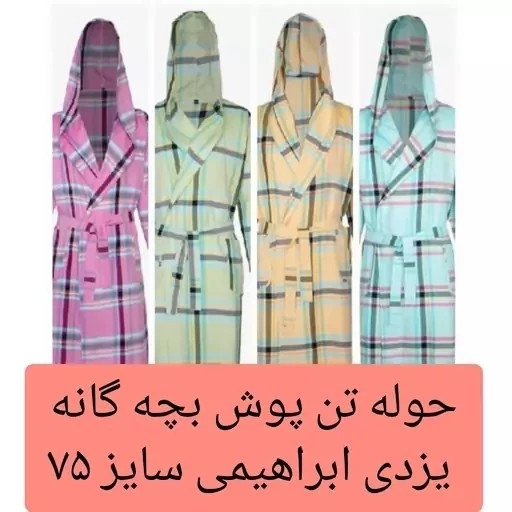 ابعاد:سایز 75 ( قد حوله از سرشانه تا زیر زانو 75 سانت است ) سایر توضیحات:حوله کودک پالتویی نخی ابراهیمی یزد مناسب برای:استفاده در منزل و مسافرت جنس:100 درصد نخ درباره محصول حوله تنپوش ابراهیمی یزد مدل کودک ( بچه گانه) سایز 75 قد حوله از سرشانه تا زیر زانو 75 سانتیمتر است برای تشخیص سایز مناسب از سرشانه کودک تا زیر زانو را اندازه کنید و متناسب قد کودک یکی از سایزهای 60 و 75 و 90 سانتیمتر را انتخاب کنید جنس الیاف طبیعی(سلولزی) ویسکوز سایر توضیحات – 100% نخ طبیعی – 100% رنگ ثابت (راکتیو ) – جذب بسیار بالای آب – شستشوی آسان( شستشو حتی با آب داغ ) – نرمی و لطافت ویژه – خشک شدن سریع – سبک و کم حجم چرا حوله نخی برای کودکان بهترین انتخابه؟ ✨ مخصوص مامانباباهایی که به لطافت پوست بچهها اهمیت میدن ✨