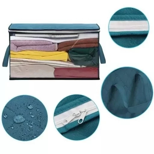 باکس نظم دهنده رختخواب مای هوم پک مدل بقچه کد X10 از جنس پارچه ضخیم و طلق شفاف ساخته شده و طول آن 58 عرض 37 و ارتفاع 31 سانتیمتر است که میتوانید انواع رختخواب , لباس و پتو را در آن جای دهید. همچنین دارای درب زیپ دار جهت جلوگیری از نفوذ گرد وغبار و حشرات می باشد که قابلیت شستشو با دست و ماشین لباسشویی را دارد.با توجه به وجود کالای غیر اصل این محصول در زمان خرید حتما به سایز , نام و لوگو مای هوم دقت کنید و در غیر اینصورت کالا را عودت دهید.