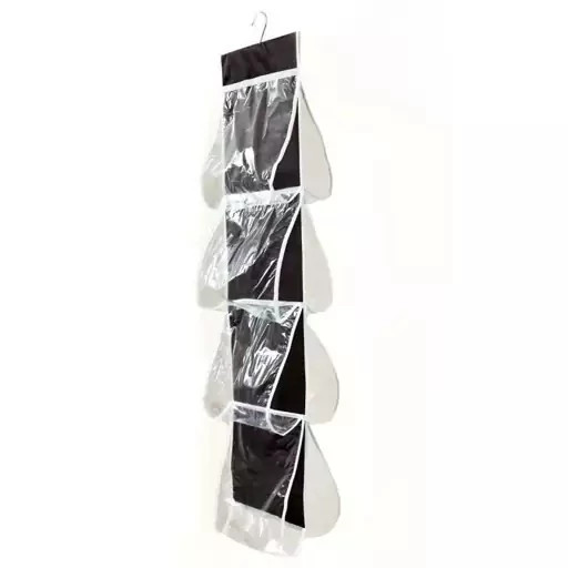 آویز کیف محصولی بسیار کاربردی جهت مرتب کردن کمد و نگهداری کیفهای زیبای خانمها بدون له شدن و کثیف شدن و خط افتادن می باشد. این ارگانایزر زیبا قابلیت آویزان نمودن کیف در کمد و نیز پشت درها را دارا است. این آویز دارای چهار طبقه مجزا در جلو و چهار طبقه مجزا در پشت است که مجموعا ظرفیت نگهداری 8 کیف را داراست. عرض هر طبقه 30CM و ارتفاع طبقه اول و دوم 26CM و ارتفاع طبقه سوم و چهارم 24CM است بنابراین انواع کیفها در سایزهای متنوع را میتوان داخل این ارگانایزر قرار داد.