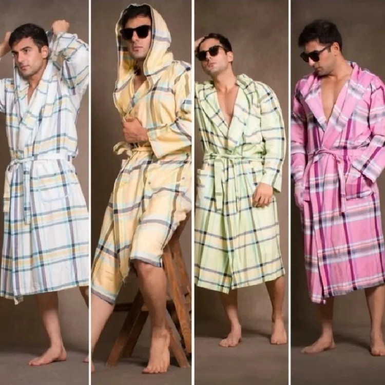 حوله تن پوش ابراهیمی سایز اسمال s حوله یزدی پالتویی نخی جنس 100 درصد نخ حوله تنپوش