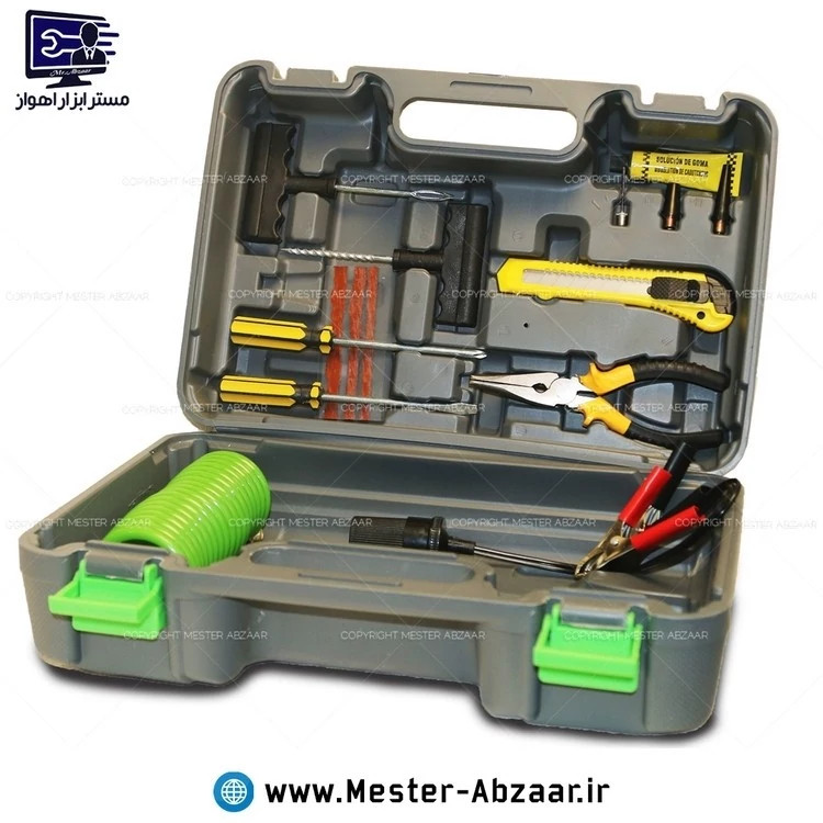 اقلام همراه : کاتر ، دو عدد پیچگوشتی ، دمباریک، چسب و دو عدد ابزار پنچرگیری ، شلنگ فنری ،