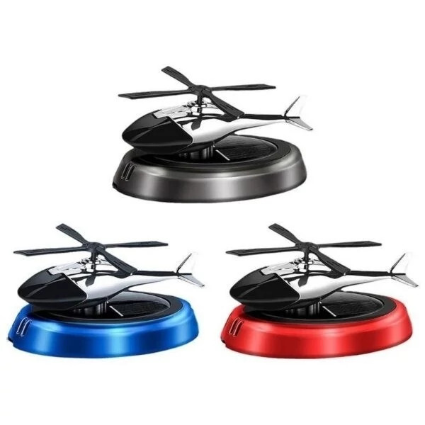ین محصول خاص مدل خورشیدی می باشد که بدون نیاز به باطری با نور خورشید پره های هلیکوپتر شروع به چرخیدن می کند و این محصول را میتوان روی داشبورد یا هر سطح صافی چسباند و این محصول دارای اسانس قطره ای خوشبو ادکلنی و قوی است که با اتمام اسانس می توان با هر اسانس که خودتون علاقه داشتید شارژ کنید . این محصول هم خوشبوکننده است هم تزیینی که زیبایی خاصی به خودرو شما می دهد