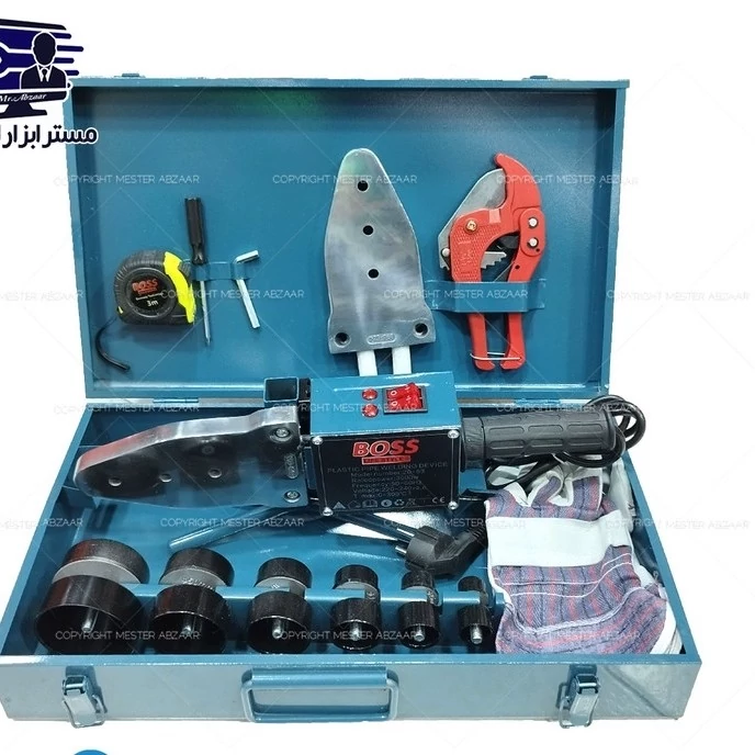 اتو لوله 3000 وات صنعتی باس بزرگ با جعبه و لوازم آبی پر رنگ مدل BOSS 20-63- حداکثر قدرت 3000 وات -دقت زیاد، کنترل دما و اطمینان بالا - مجهز به عایق بسیار قوی در قسمت اتصال راکت حرارتی - مجهز به سیستم حرارتی پیشرفته با به کارگیری دو المنت قوی مجزا - مجهز به راکت حرارتی زاپاس جهت انجام جوش یکنواخت در اتصالات لوله ها - توان الکتریکی بالا جهت ایجاد حرارت متناسب و یکنواخت حین انجام اتصالات - قابلیت تنظیم حرارت تا 300 درجهی سانتیگراد - ولتاژ: 220 ولت - دارای 2 کلید روشن و خاموش کردن - دارای کاربرد صنعتی انواع لوله قابل استفاده PE ,PB ,PP-R, PE-RT اقلام همراه جعبه فلزی پیچ گوشتی چهارسو آچار آلن تعویض 6 عدد سری برای لوله هایی با سایزهای 20و25و32و40و50و63 1 عدد قیچی لوله 1 عدد متر 3 متری 1 عدد پایه نگه دانده نشکن مقاوم 1 عدد المنت اضافه یک جفت دستکش ترموستات دارد توان 3000 وات سایز سریهای گرم کننده لوله 20- 25 - 32 - 40 - 50 -63 ویژگیهای دستگاه جوش لوله پلیمری قابلیت تنظیم حرارت گارانتی ضمانت سلامت فیزیکی