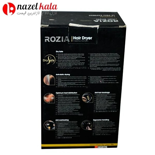 سشوار مسافرتی روزیا مدل HC-8170، طراحی تاشو و جمعوجور، تنظیم حرارت و سرعت، سبک، کمصدا، حمل آسان، مناسب سفر و استفاده روزمره