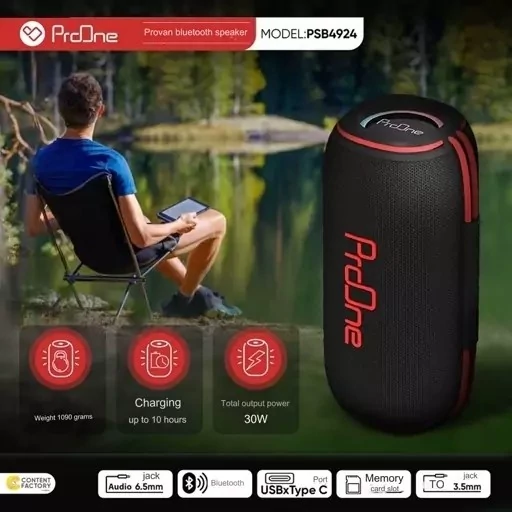 یکی از تجهیزات لذت بردن از مهمانیها، مسافرت، کمپها و حتی سر کردن در تنهایی خود داشتن یک اسپیکر است که چه بهتر این ابزار از نوع اسپیکر بلوتوثی باشد تا محدودیتی در استفاده از آن در شرایط و مکانهای مختلف نباشد. اسپیکر بی سیم شارژی پرووان PSB4924 میتواند یکی از گزینههای خوب برای انتخاب باشد؛ چون با داشتن دو بلندگوی بزرگ 78 میلی متری، خروجی بلندگوی 30 وات و امپدانس 4 اهم صدایی واضح را در اختیارتان قرار میدهد.