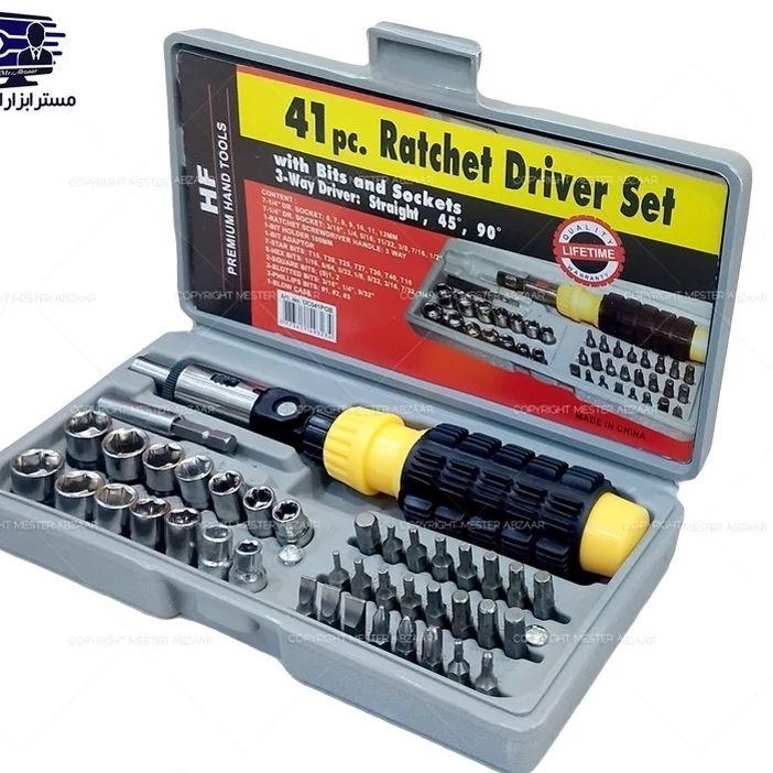 ست بیت و بکس 41 عددی جغجغه ای و پیچ گوشتی تاشو درایو 1/4 ام مدل HF 41PC کیفیت بسیار خوب و قیمت استثنایی!!! شامل 41 عدد ست بیت و بکس و رابط ها و دسته جغجه و کیف همراه 14 عدد بکس شش پر درايو 1/4 اينچ کوتاه در سایز های 6- 7 - 8 - 9 - 10 - 11 - 12 - 4 - 4.5 - 5 - 5.5 - 6.5- 7.5-12 سه عدد پیچ گوشتی بکسی چهار سو (PH.1 , PH.2 , PH.3) سه عدد پیچ گوشتی بکسی دو سو هشت عدد آلن بکسی هفت آلن بکسی ستاره ای يک عدد دسته بکس جغجغه مقاوم درایو 1/4 دو عدد واسطه شامل کوتاه و بلند همراه با جعبه پلاستيکی مقاوم برای نگهداری قیمت مناسب تر از کل کشور با ضمانت سلامت فیزیکی کالا